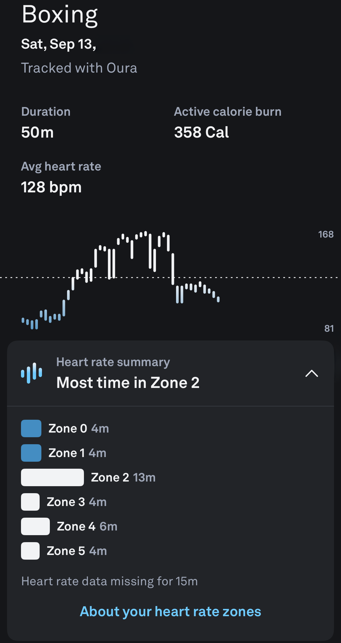I decided to start tracking my scores. I get a score based on the force and number of punches I hit during the workout. The number of my punches is definitely going up but the force is steady which signals to me that my cardio is getting better even though I’m not getting much stronger. But I haven’t been doing much weightlifting. Definitely something to incorporate later on. I do feel like I’m kinda going through the motions in class though. It is a heavy bag class but I do wish my form and stance looked more like a boxer. Even though I have no intent or interest in being a professional boxer, I would like to be good at it.